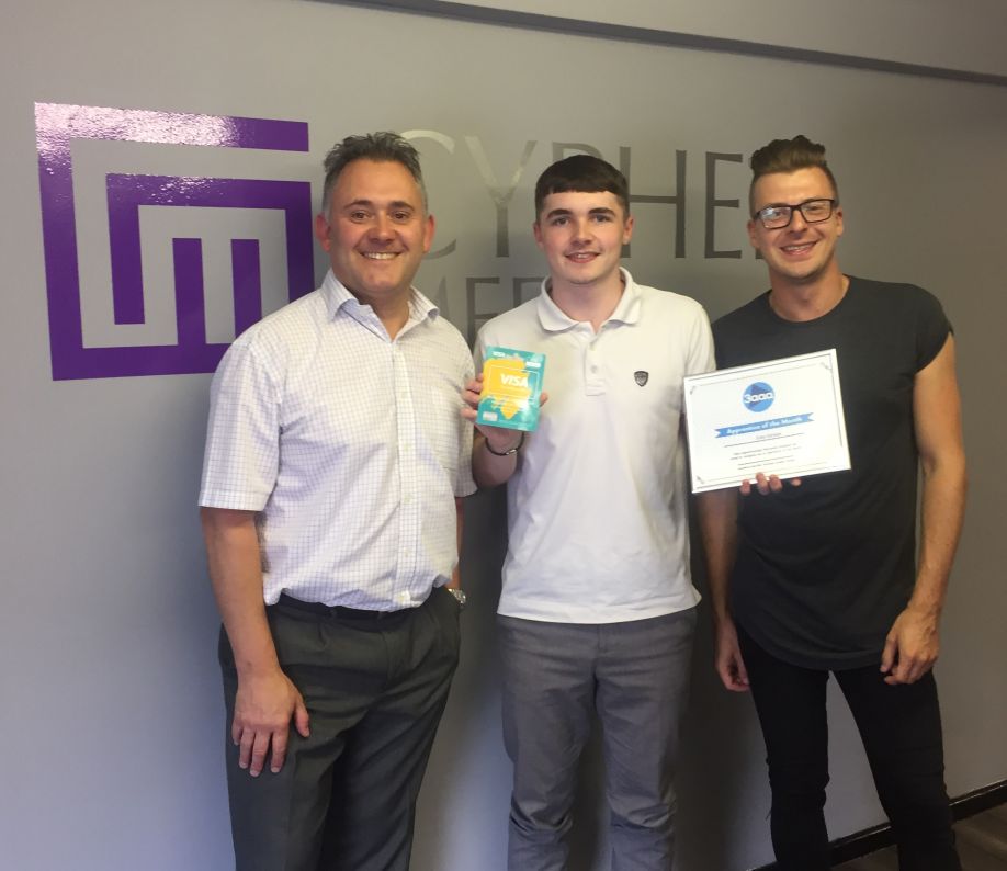 We’re proud to announce that Jake, Cypher Media’s apprentice, has been awarded with ‘Apprentice of the Month’ for June by 3aaa Worcester, with whom he has been undertaking his training courses.