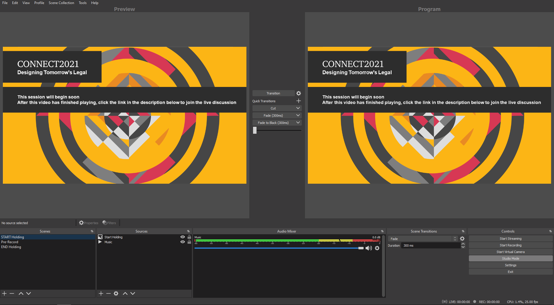 We conducted 21 plenary sessions across the 3-day event. Our Wirecast livestreaming software was set up to cater for anywhere between 1 & 8 speakers on ‘stage’ at any given time, all fit into a bespoke branded template we created for viewers. Speaker’s video and audio were pulled in through WebEx meetings and fed directly into our streaming setup, allowing us to directly output it on stream. Built into the app / webapp where the conference was being hosted was a live q&a feature, allowing any participant to send off questions and queries to speakers throughout the sessions.