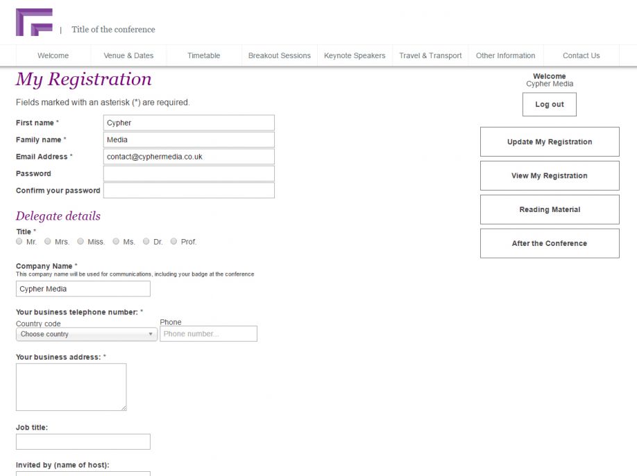 Our in-house, bespoke conference registration websites can be customised to suit your event requirements.
