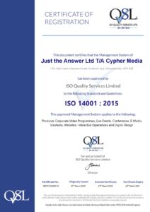 After the successful recertification of our ISO 27001 policy, we decided our next challenge would be to get ISO 14001 certified and we are proud to say we have achieved it.
