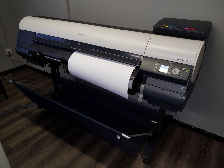 We felt it’s about time we upgraded our banner printer. Sadly, Canon are discontinuing the inks for our current printer, the Canon ImagePROGRAF iPF6400, which has worked fantastically for the past 10 years, however, this gave us an excuse to purchase one of its successors, the Canon ImagePROGRAF iPF8400SE. This new banner printer is much larger, coming in at 189.3 (W) x 97.1 (D) x 114.4 (H) cm.