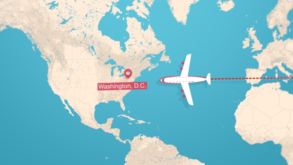The brief from the client was to take last years next year in Washington video and add animated elements to show not only the global side of the conference but also show the transition from last years event (Tokyo) to this year’s event. We animated a globe in the brand style and colours of our client and transitioned into a map of the world showing an animated plane travelling from Tokyo to Washington DC. As we were using last years videos which was edited to the Washington Post march, we had to source music for the extra animated elements at the beginning. We found a military drum progression that built to the moment the plane lands in Washington. Meaning the music still worked with the edit.